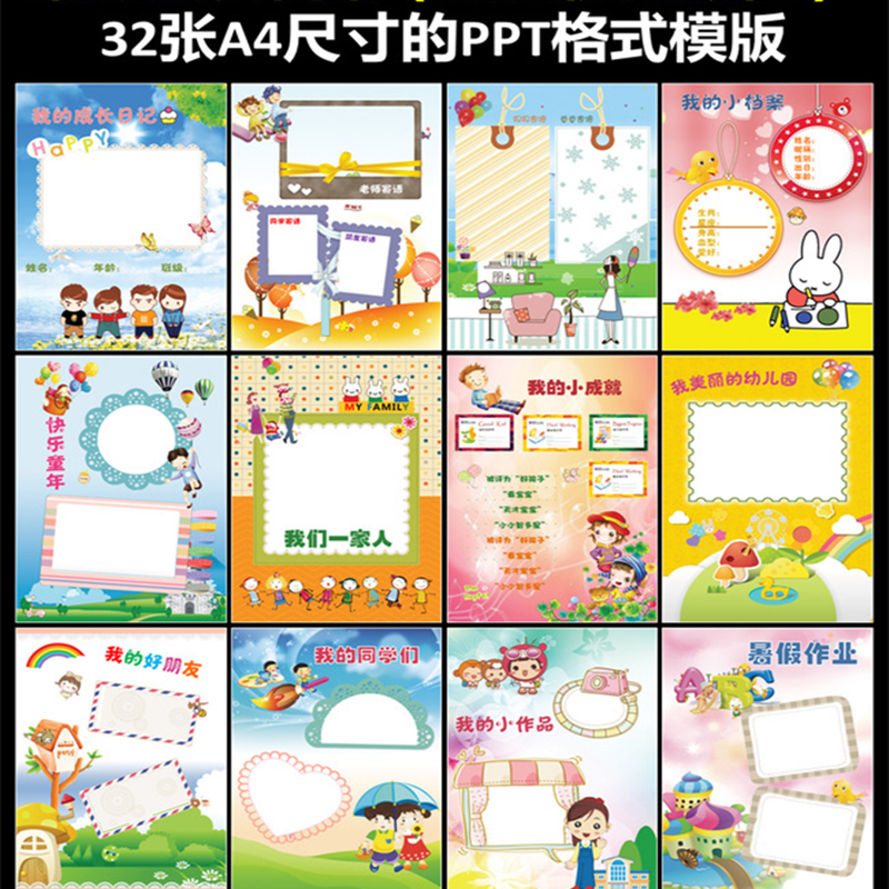 宝宝幼儿园小学生儿童成长档案手册记录A4纪念册ppt模板素材设计热门设计联盟服务商