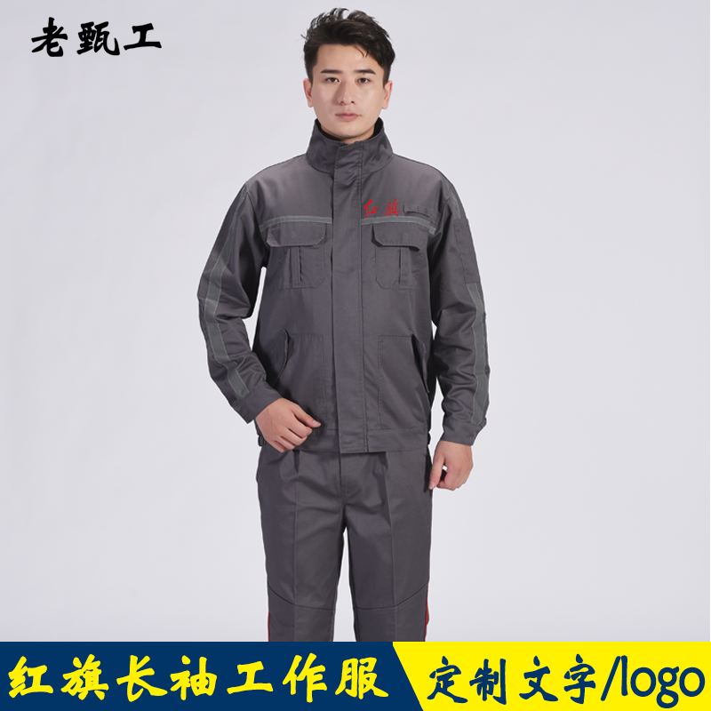 秋冬季红旗长袖工作服套装男4s店工装汽车售后维修厂劳保服定制热门设计联盟服务商